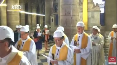 ノートルダム大聖堂 AFP通信がヘルメット姿で行われたミサを伝える 2019年7月22日