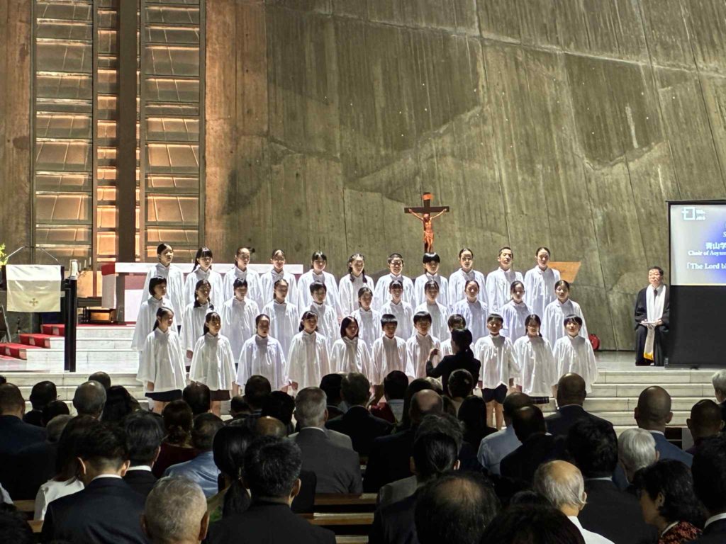 式典の中では、青山学院初等部聖歌隊による特別賛美もささげられ、清らかな歌声が会堂を満たした。
