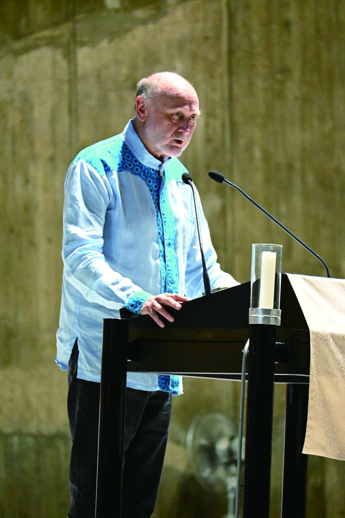 海外からは、スコットランド聖書協会理事長のエレイン・ダンカン氏、157の加盟国を擁する聖書協会世界連盟(UBS)総主事のダーク・ギバース氏=写真上=らが来日し祝辞を寄せた。ギバース氏は、日本の聖書協会が世界の聖書普及事業の中で果たしてきた重要な役割に触れ、「日本における聖書普及事業が、海外発の伝道活動から現地主導の活動へと移行したことは、神のみ国の働きの良い実例。日本聖書協会が、諸国からの支援に恵まれ、今では世界の他の地域の聖書協会を支援し、祝福する存在となったことを感謝したい」と語った。