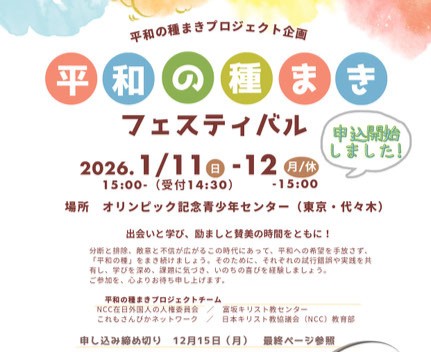 【東京・1月11日~12日】平和の種まきフェスティバル
