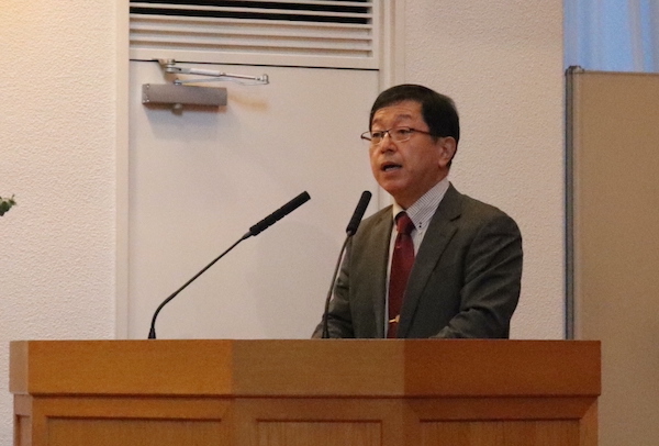 朗読された聖書のことば、バビロン捕囚となる将来の人々に向けて語られたこの箇所で「光」に注目して3つの希望ついて解き明かした。一つは、「起きよ、光を放て。あなたの光が来て主の栄光があなたの上に昇ったのだから」(1節)をとおして語られた。光は人間が努力して作り出すものではなく、すでに神の側からわたしたちに与えられている。ただじっと待っているだけでなく、起きて与えられて光を放てと主が命じられていることを伝え、「足元がたとえ暗くても、光の源である主はそこに立っておられるという希望がある」と話した。