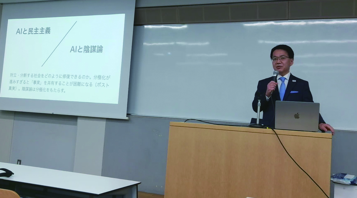 AIは個人を強力な発信主体にする一方、社会全体のコミュニケーション不全を加速させているという矛盾を抱えており、陰謀論の克服は簡単ではないが、AIが拡散に加担しないためにも、技術の透明性、説明責任、公平性の確保や学際的連携が必要だと訴えた。