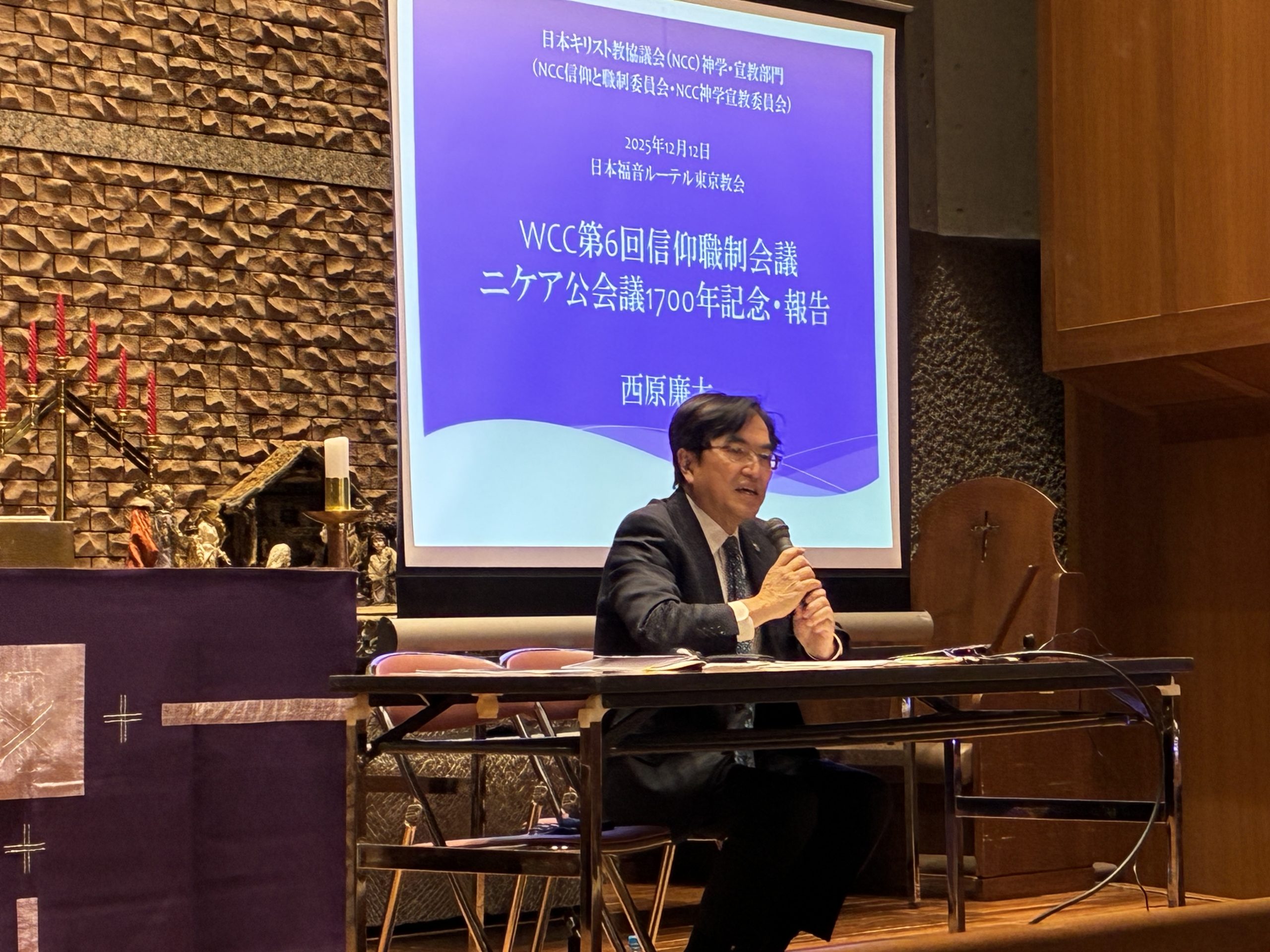 「ニケア公会議1700年」を記念する世界教会協議会(WCC)「第6回信仰職制世界会議」の報告会が2025年12月12日、日本福音ルーテル東京教会(東京都新宿区)で開催された(日本キリスト教協議会=NCC=神学・宣教部門主催)。報告を行ったのは、同会議に日本から参加した西原廉太氏(日本聖公会中部教区主教・京都教区管理主教、NCC信仰と職制委員会委員長)。