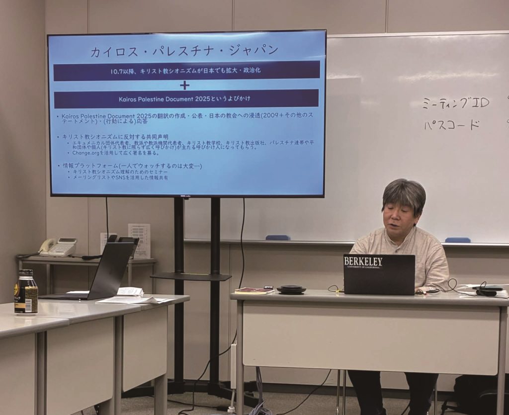 大宮氏は昨年6月、キリスト教事業所連帯合同労働組合主催で行われたオンライン学習会でも「キリスト教シオニズムの根を断ち切れ!」と題して講演。イスラエル国家を無条件に支持する神学的・思想的枠組みが、どのような歴史的経緯で形成され、今日に至っているのかを分析した。