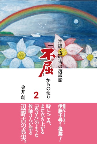 金井氏は1954年北海道生まれ。早稲田大学、東京神学大学大学院修士課程で学び、日本基督教団富士見町教会副牧師、明治学院チャプレンを経て、2006年から佐敷教会に赴任。14年から抗議船「不屈」船長として抗議船を自ら繰り、辺野古新基地建設抗議の海上行動を続けてきた。著書に『沖縄・辺野古の抗議船「不屈」からの便り』(みなも書房)=写真上=など。