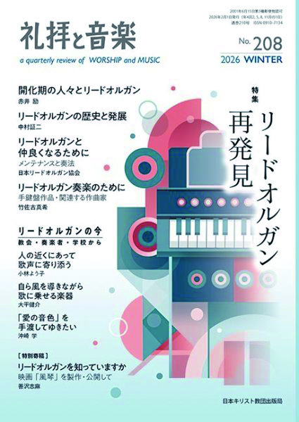 日本キリスト教団出版局の事業整理に伴い4月発売の次号209号をもって休刊になる同誌。今号の特集は「リードオルガン再発見」。リードオルガンの特集は2012年秋号以来およそ13年ぶりだという。「『足踏みオルガン』として親しまれてきたリードオルガンは、戦前戦後にわたってこの国の教会の礼拝音楽を支えてきました。そして今、この楽器がもつ豊かな可能性に教会を越えて熱い視線が注がれています」と。